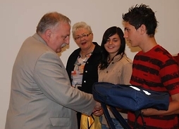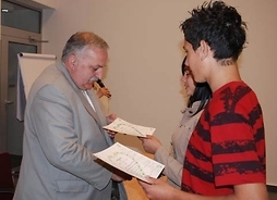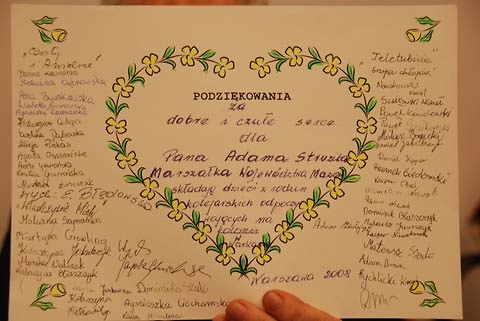 Podczas spotkania, które odbyło się 10 lipca br. w Urzędzie Marszałkowskim Województwa Mazowieckiego, Członek Zarządu Waldemar Roszkiewicz wręczył dzieciom upominki, które będą przydatne w trakcie letniego wypoczynku nad wodą oraz zapewnią bezpieczeństwo w ruchu drogowym. Każde dziecko wyposażone zostało w zestaw artykułów związanych z programami „Bezpieczna droga do szkoły” i „Już pływam”. Celem akcji realizowanych przez Samorząd Województwa Mazowieckiego jest poprawa bezpieczeństwa dzieci dojeżdżających do szkół rowerami lub pokonujących tę trasę pieszo oraz wspieranie nauki pływania i zasad bezpiecznego przebywania nad wodą. Podczas spotkania opiekunowie opowiedzieli o sytuacji życiowej dzieci oraz o tym jak spędziły czas na wakacjach na Mazowszu.