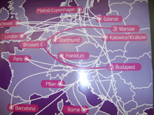 Do tej pory do Polski lata linia WIZZAIR kilka razy w tygodniu i cieszy się dużym zainteresowaniem podróżnych. Władze lotniska jak też przedstawiciele wymienionych linii lotniczych zainteresowani są poszukiwaniem innych lotnisk na terenie Polski, w tym współpracą z przyszłymi lotniskami typu cargo położonymi na terenie województwa mazowieckiego.